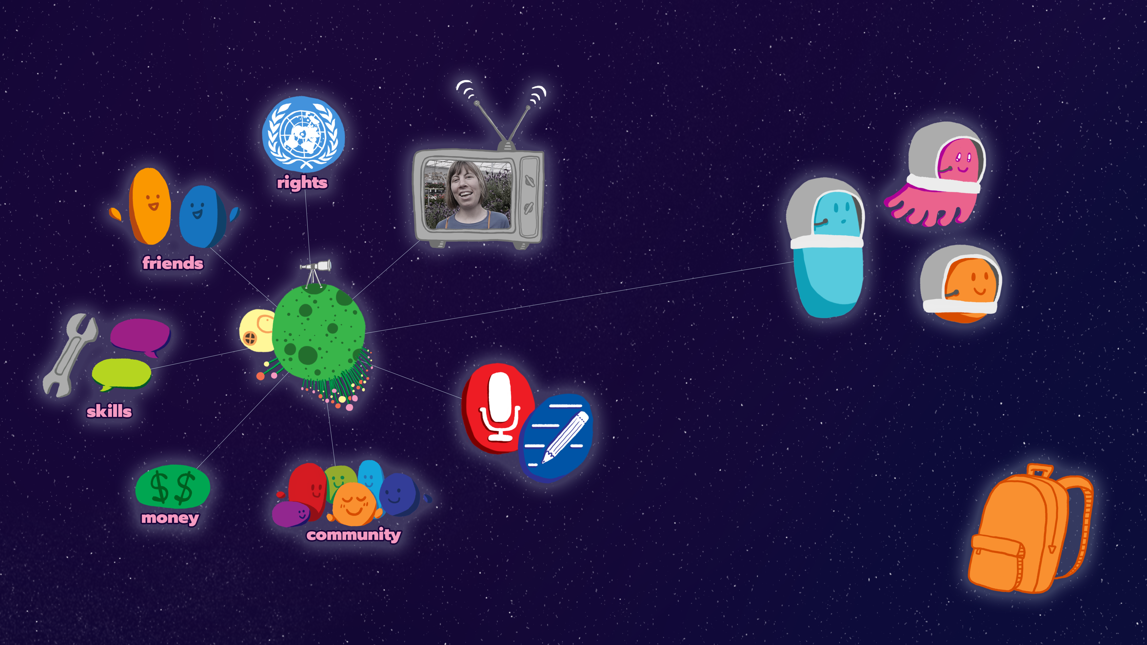 The teens’ content was embedded in a larger “space” narrative, and delivered in character-led interactive videos.